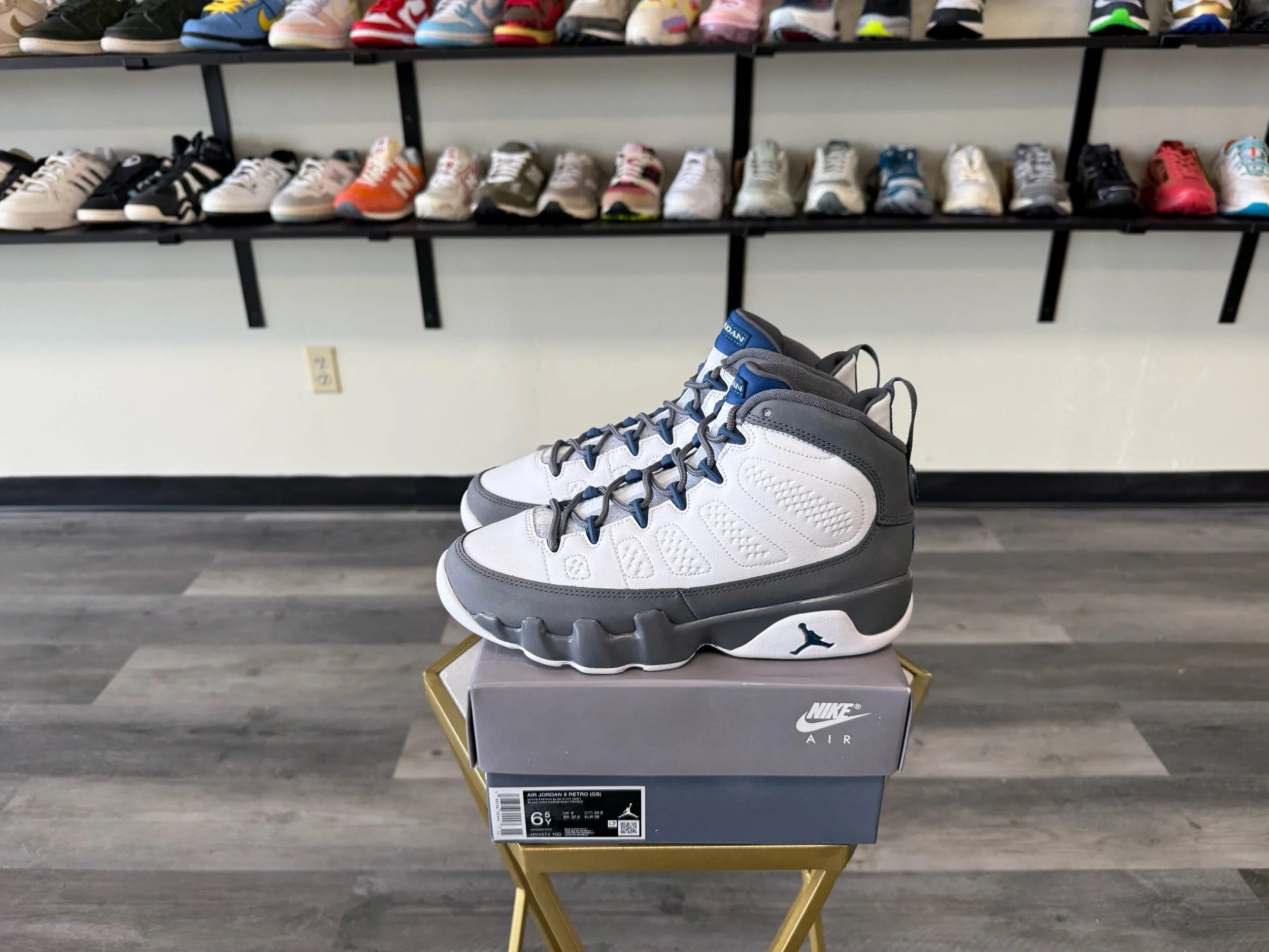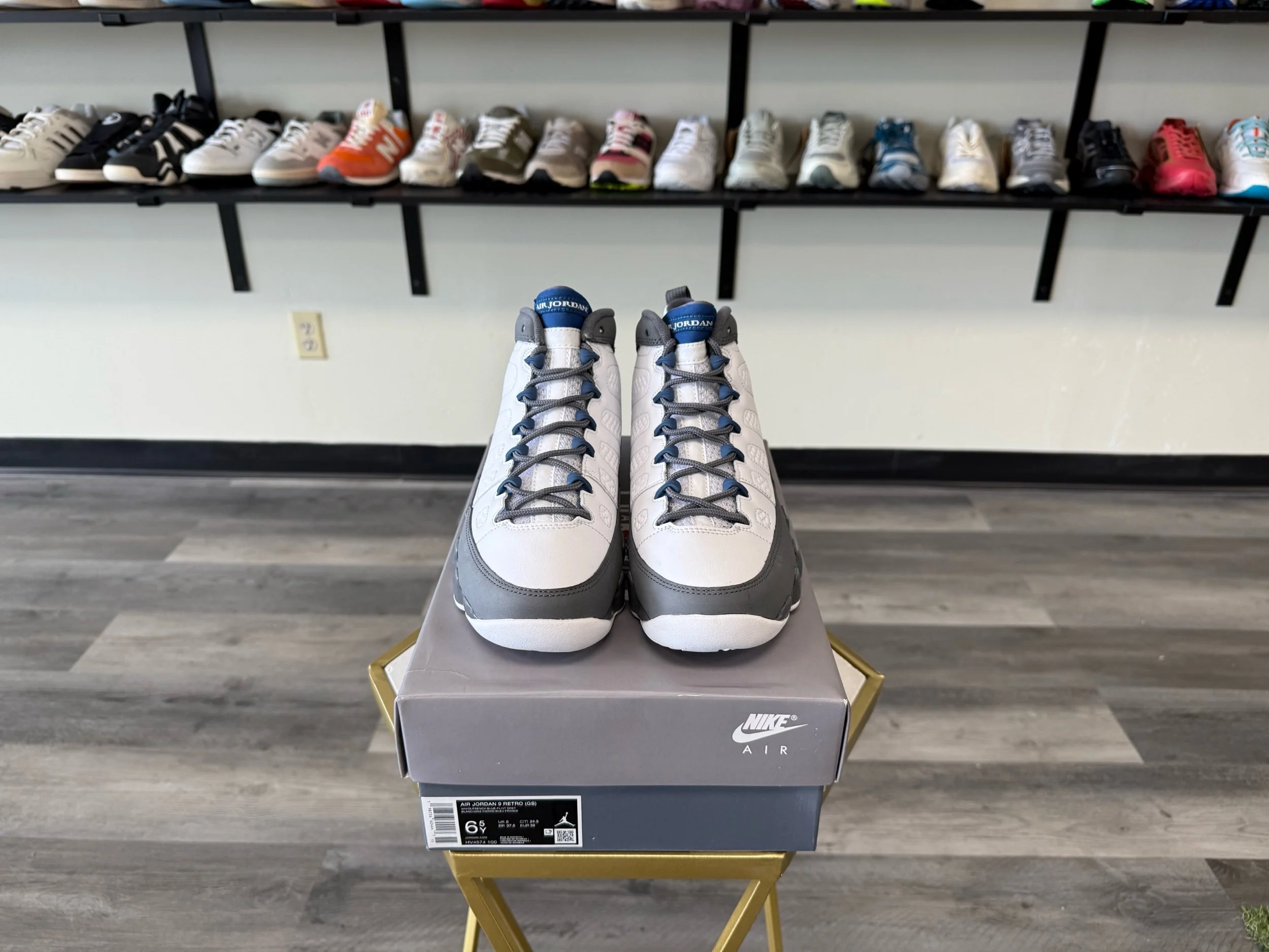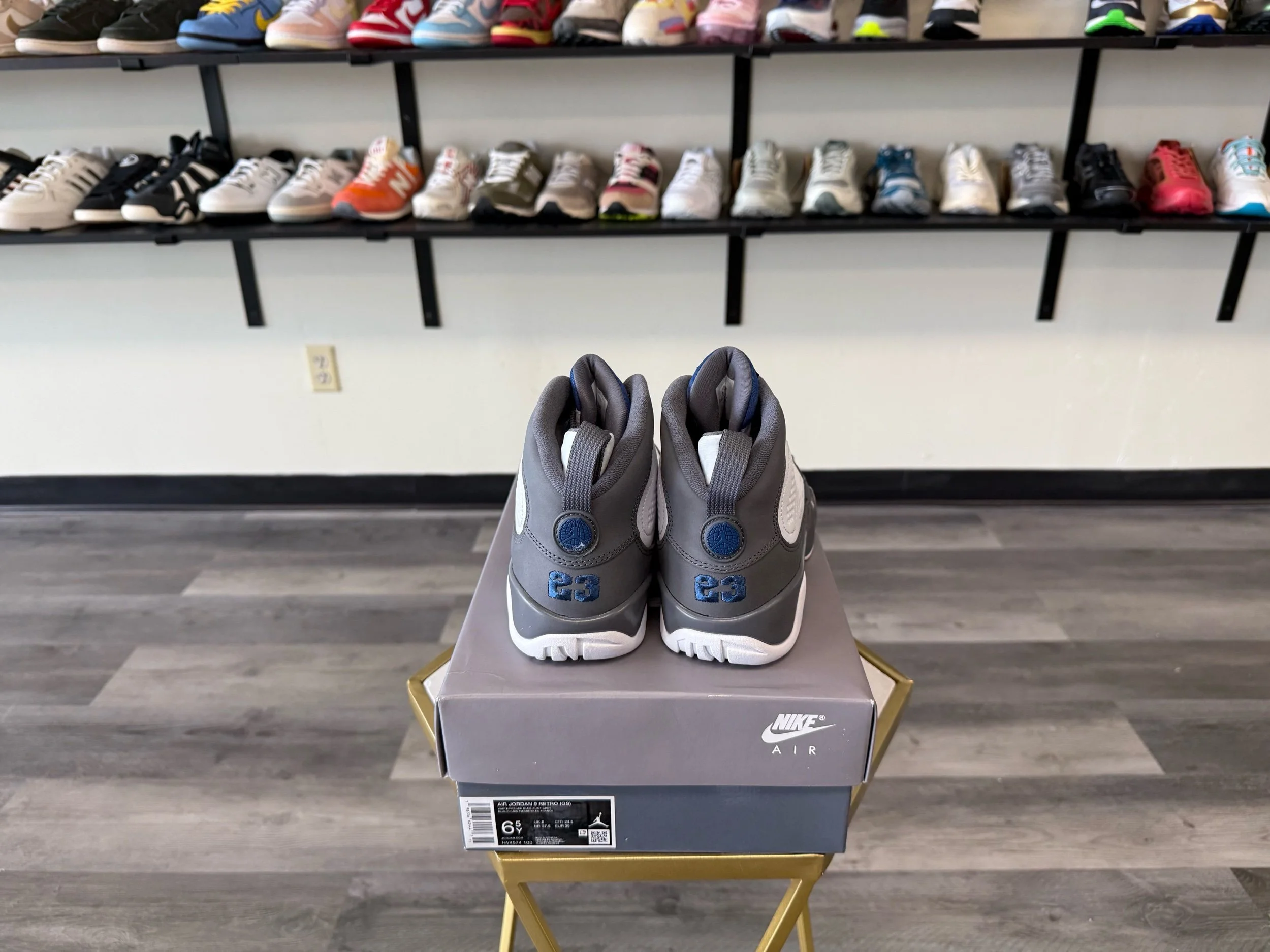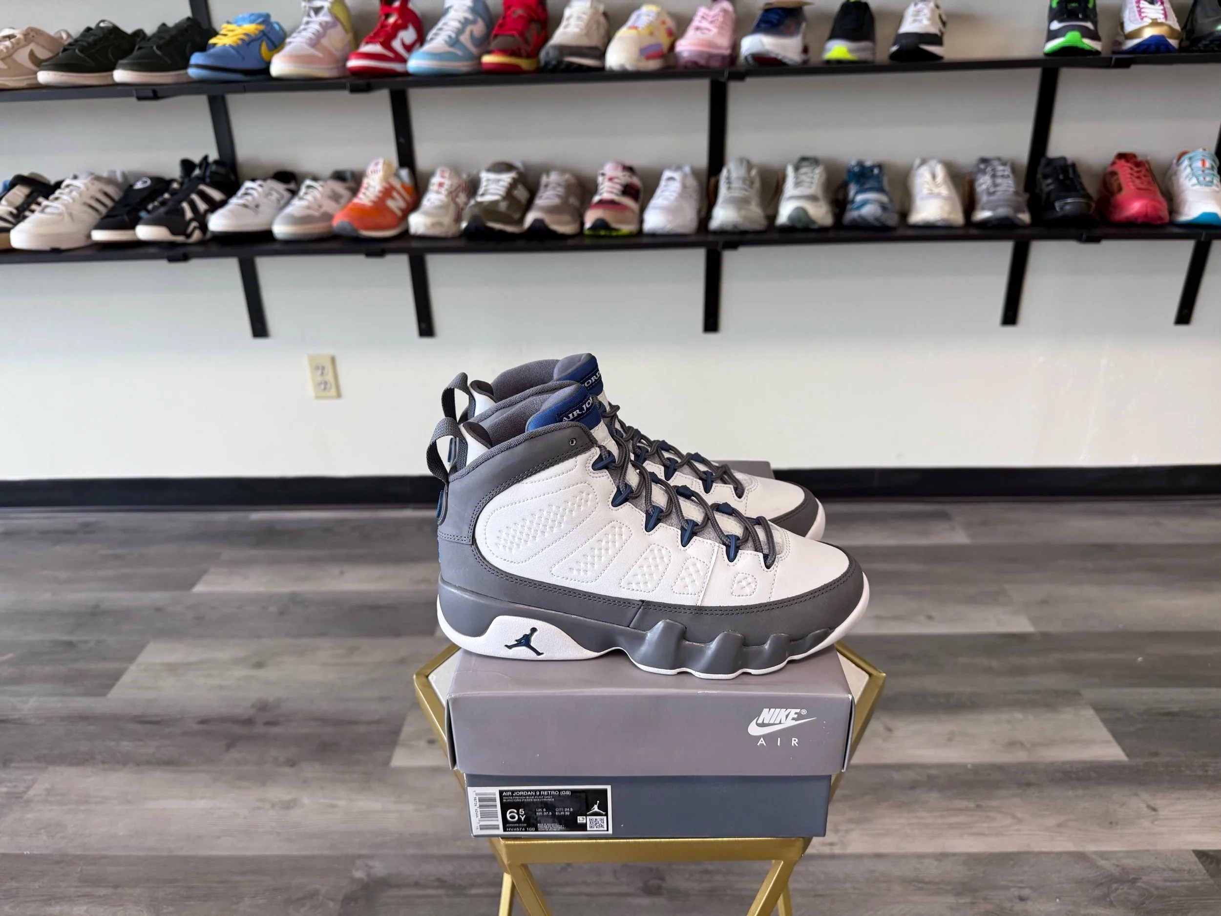 Shop › Jordan 9 “Flint” Image 1 of 6 Image 2 of 6 Image 3 of 6 Image 4 of 6 Image 5 of 6 Image 6 of 6 Jordan 9 “Flint” $110.00 Release Date: 1/24/2026Condition: Brand New100% AuthenticSize 6.5Y Add To Cart Added! Release Date: 1/24/2026Condition: Brand New100% AuthenticSize 6.5Y