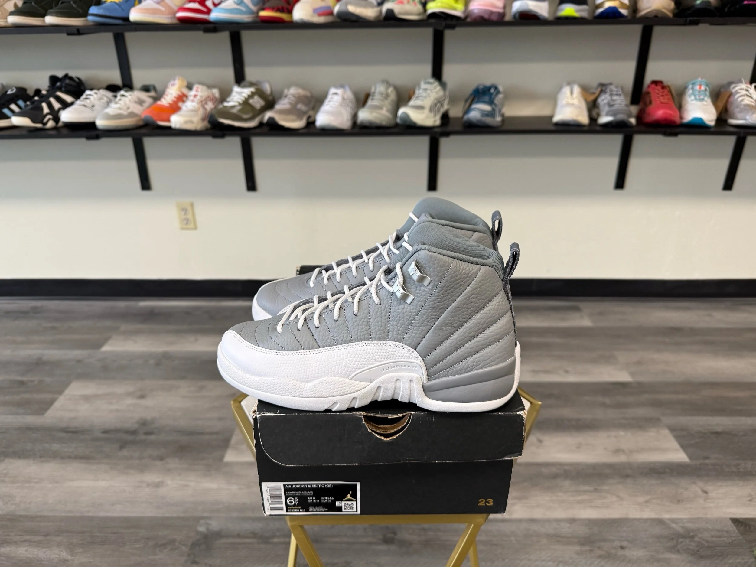 Shop › Jordan 12 “Stealth” (Worn) Image 1 of 6 Image 2 of 6 Image 3 of 6 Image 4 of 6 Image 5 of 6 Image 6 of 6 Jordan 12 “Stealth” (Worn) $80.00 Release Date: 8/27/2022Condition: Preowned100% AuthenticSize 6.5Y Includes original box Add To Cart Added! Release Date: 8/27/2022Condition: Preowned100% AuthenticSize 6.5Y Includes original box