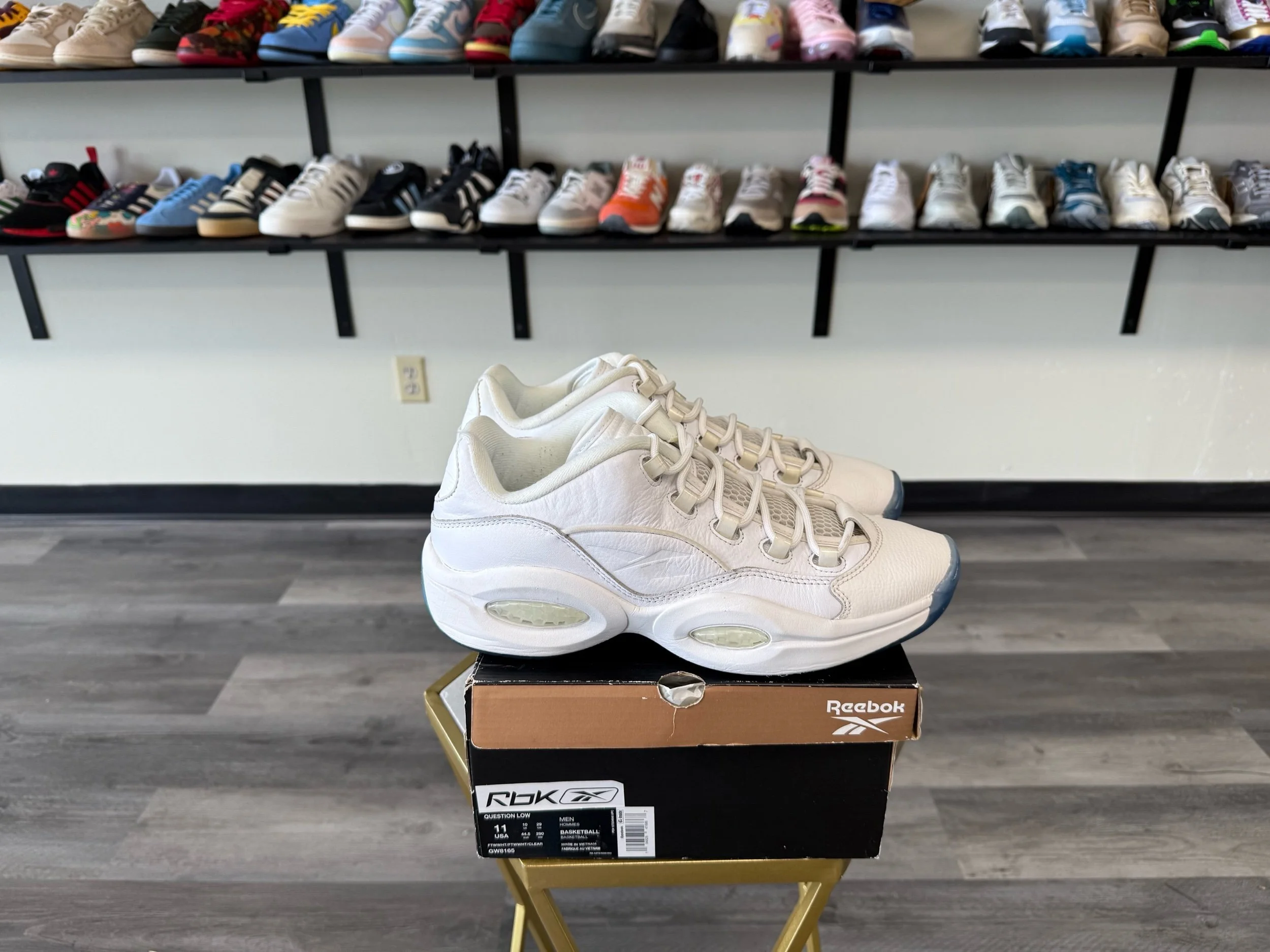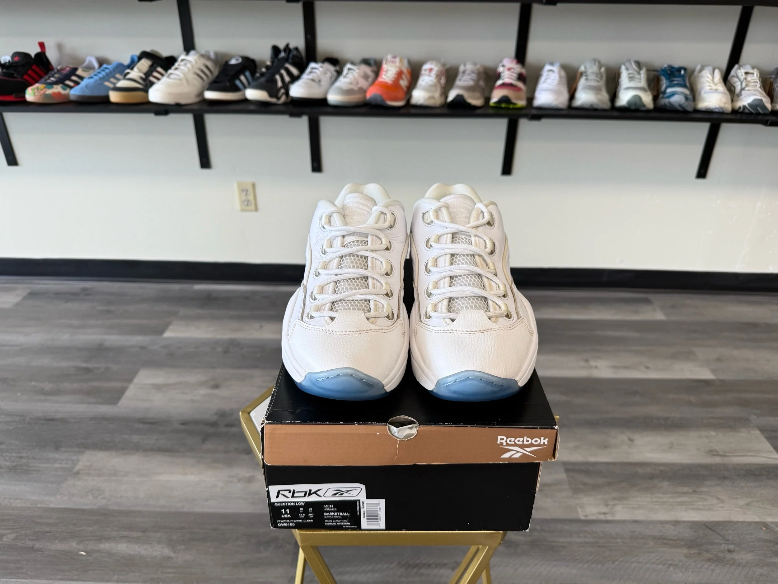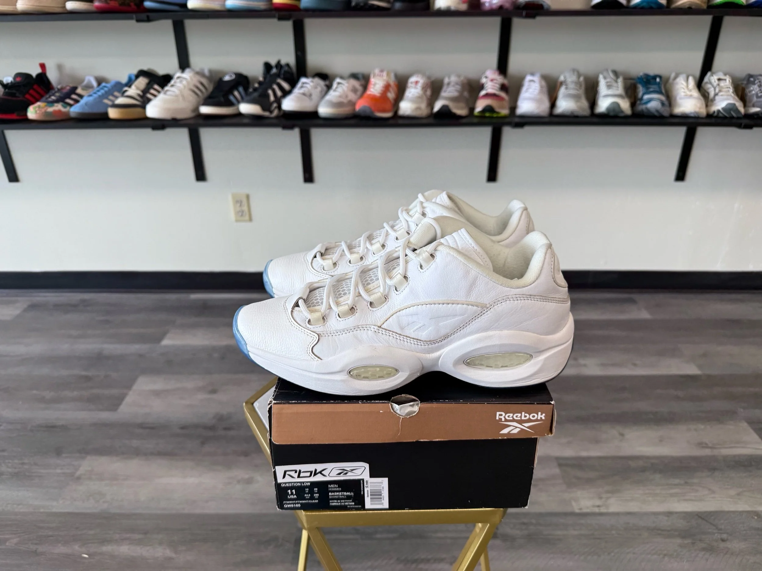 Shop › Reebok Question Low “White Clear Blue Sole” (Worn) Image 1 of 6 Image 2 of 6 Image 3 of 6 Image 4 of 6 Image 5 of 6 Image 6 of 6 Reebok Question Low “White Clear Blue Sole” (Worn) $50.00 Release Date: 6/30/2021Condition: Preowned100% AuthenticSize 11 Includes original box Add To Cart Added! Release Date: 6/30/2021Condition: Preowned100% AuthenticSize 11 Includes original box